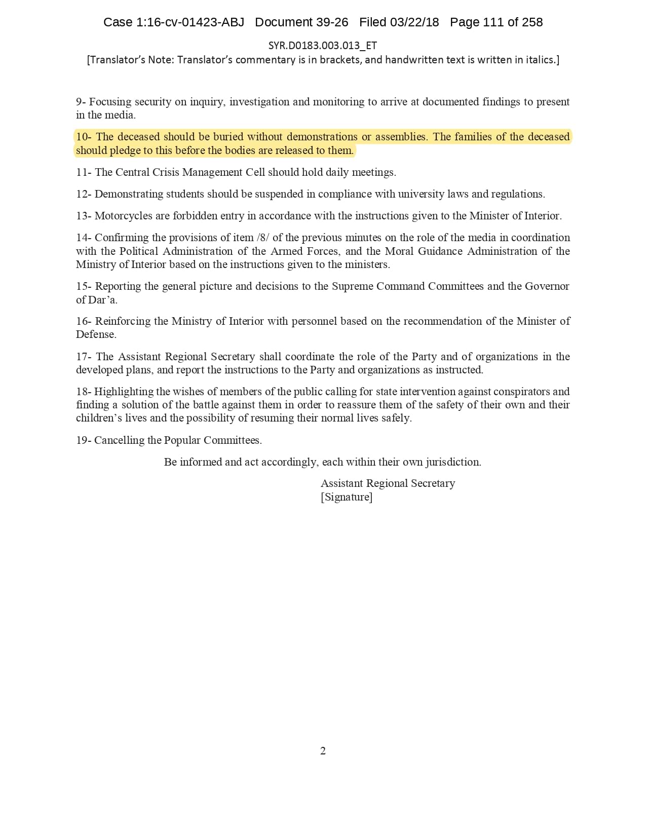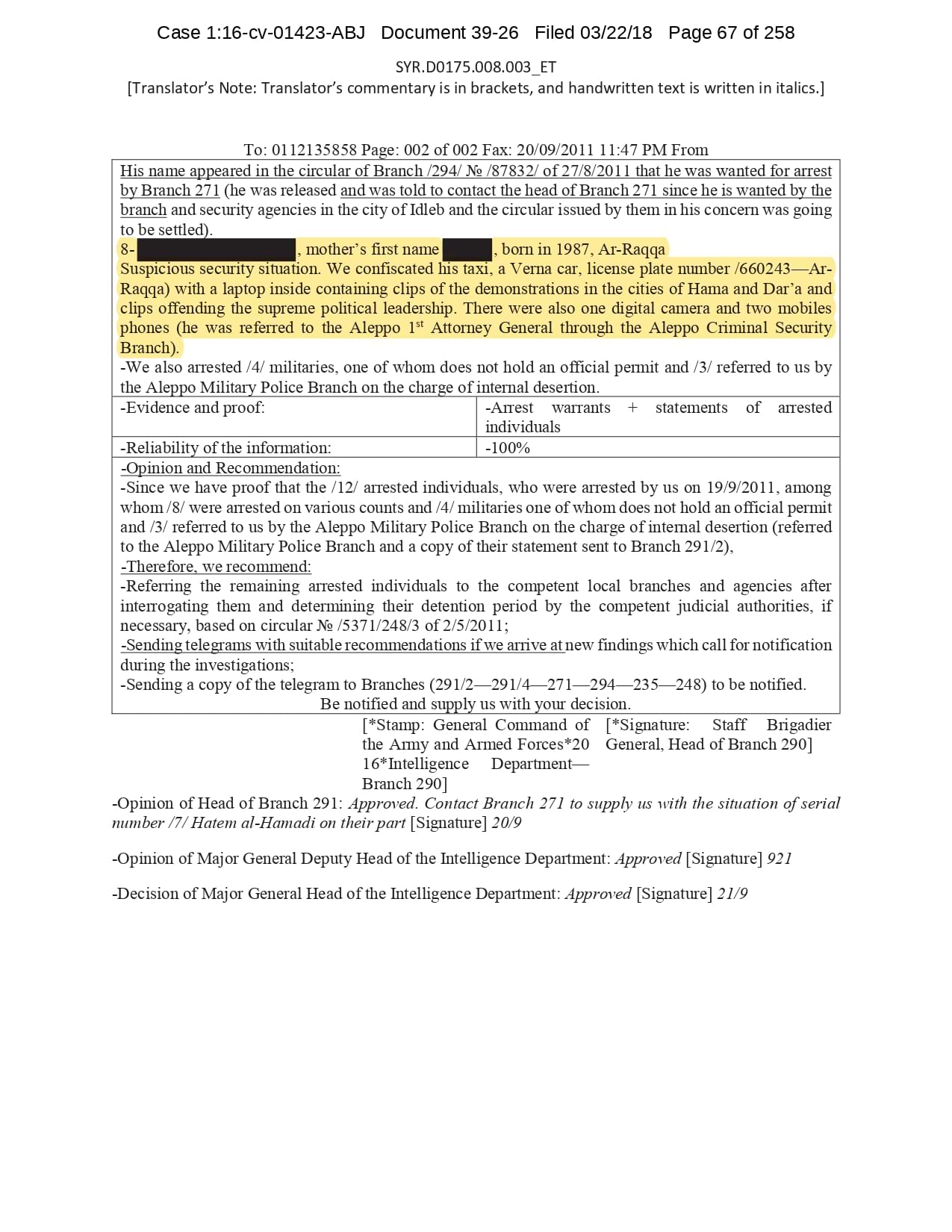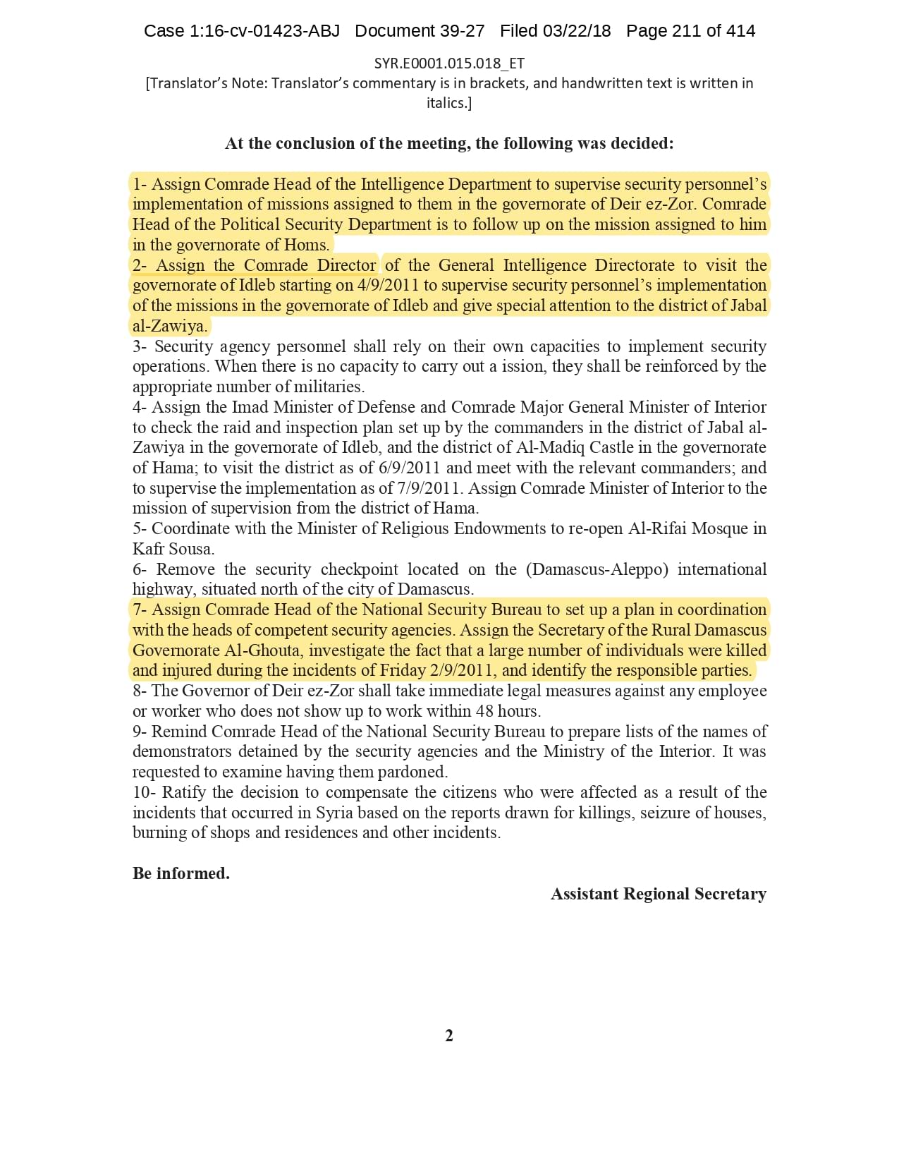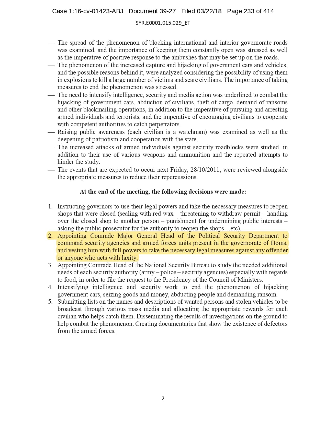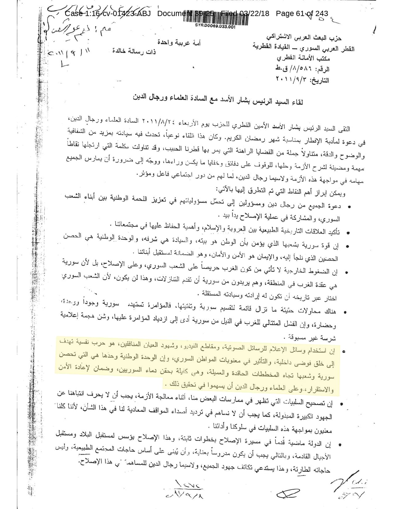 But the Regime’s own documents paint a different picture. As this report shows, the Syrian Regime knew that the demonstrators demanded freedom and democracy. Yet it formulated and then implemented policies to forcefully suppress opposition activity from early 2011. In doing so, the Regime – at its highest level - knew it was targeting civilians, many of them children, across the protesting governorates; it knew its reaction was so forceful that its own bureaucracy complained about the mounting number of dead, and did nothing to stop, prevent or punish those responsible. This report focuses on three distinct changes in the Regime’s strategy to quash the protests. In three separate Acts – played out in April, August and November 2011 – the Regime escalated its tactics to unimaginable levels, casting a dark shadow over the aspirations of the Syrians yearning for freedom.