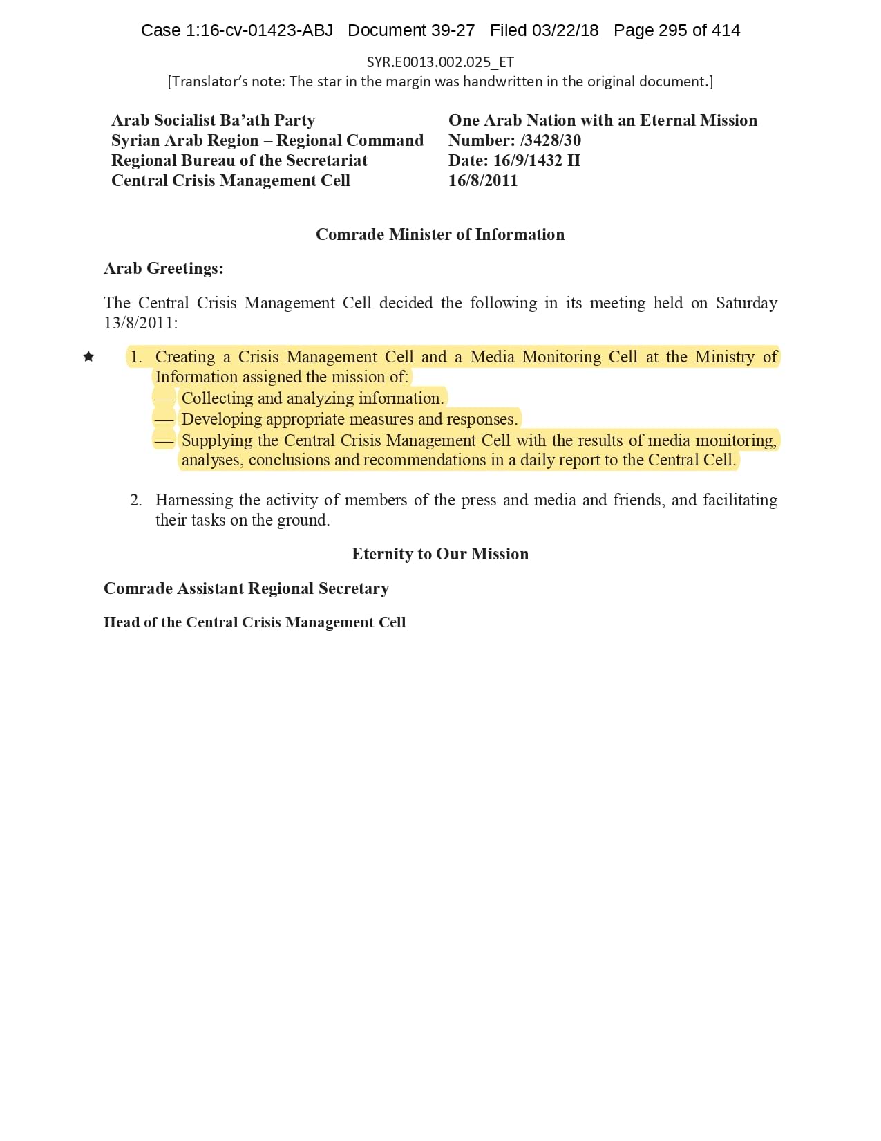 In the shadows, as the revolution grew, CIJA investigators embarked on a silent and painstaking task – to get the evidence that would allow for the Syrian Regime high-ranking perpetrators of war crimes to be identified. They got much more than that. Over the course of a decade they defied all odds to unearth a staggering trove of more than 1.3 million pages of Regime-issued documents. These pages were not just ink and paper: they were a narrative of unhinged power, an intricate web of orders, instructions, circulars, reports and studies that flowed through the chains of command laying bare the extreme measures to which the Regime would resort to maintain its iron grip on the nation.